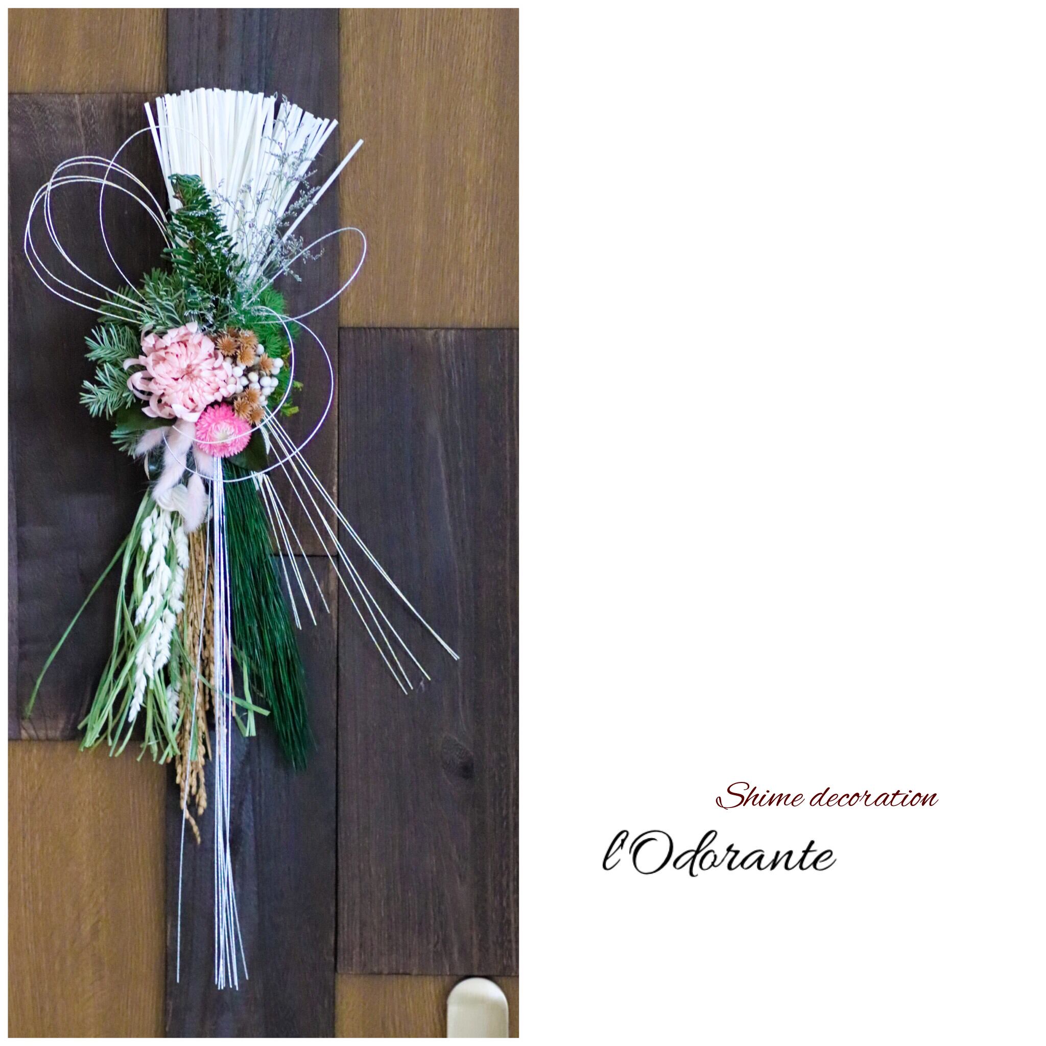 送料込み*s04*しめ飾り*ラタン飾り*お正月飾り*しめ縄*ホワイト*プリザーブドフラワー*アーティフィシャルフラワー*ドライフラワー*木の実*ハンドメイド