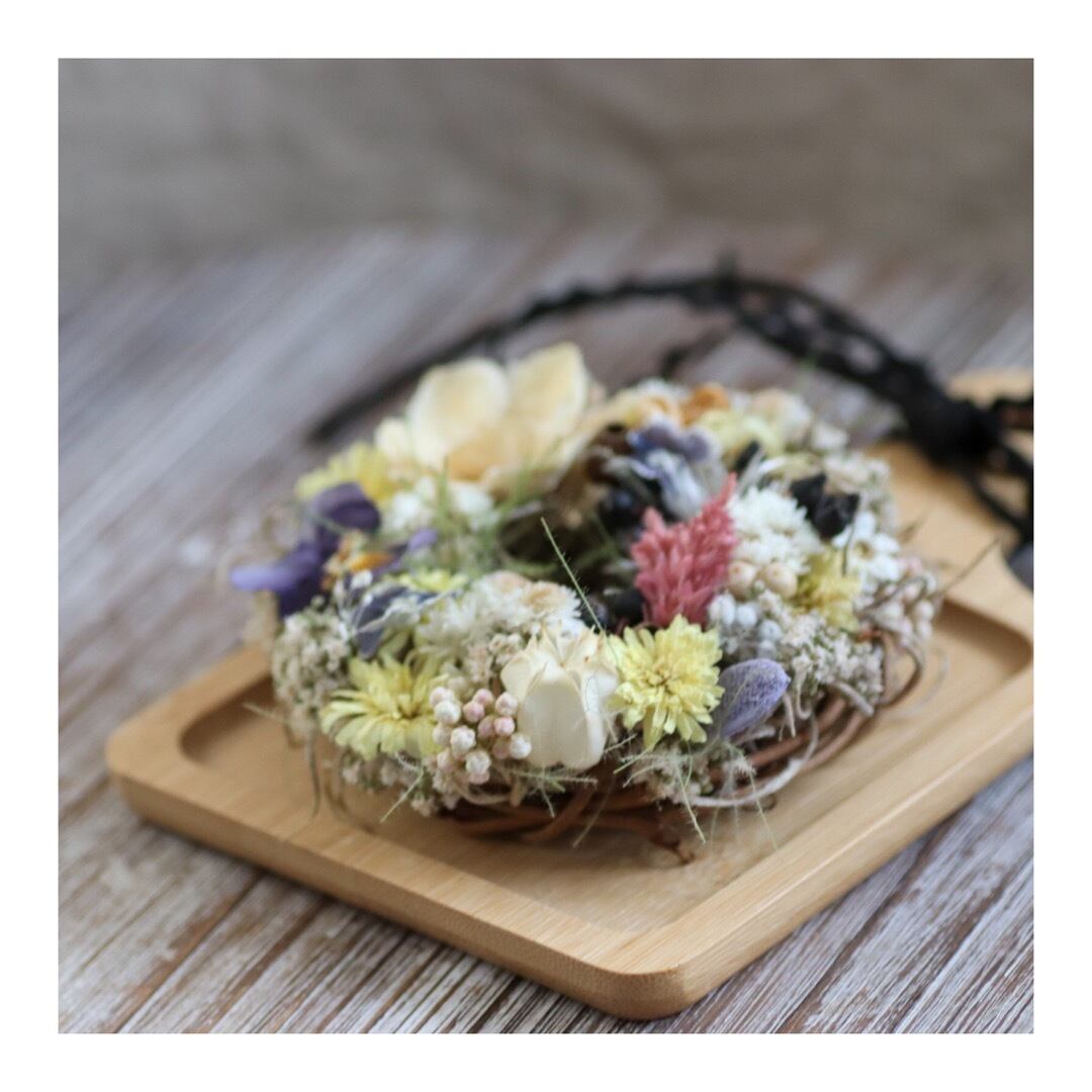 トレーをベースにミニリースをプラスしたオーナメントです❁⃘*.゚