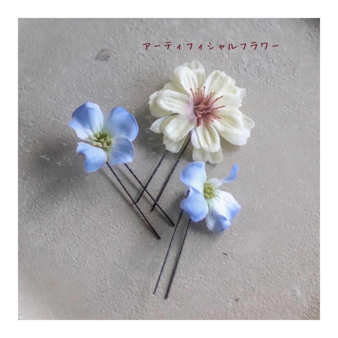 セットに、Uピンでひとつひとつ仕上げた小花付き