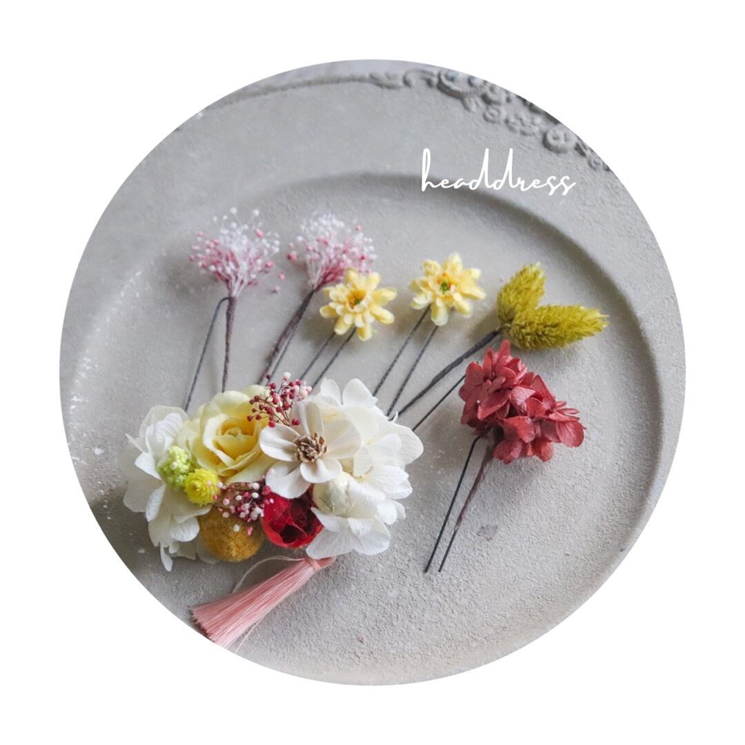 セットに、Uピンでひとつひとつ仕上げた小花付き