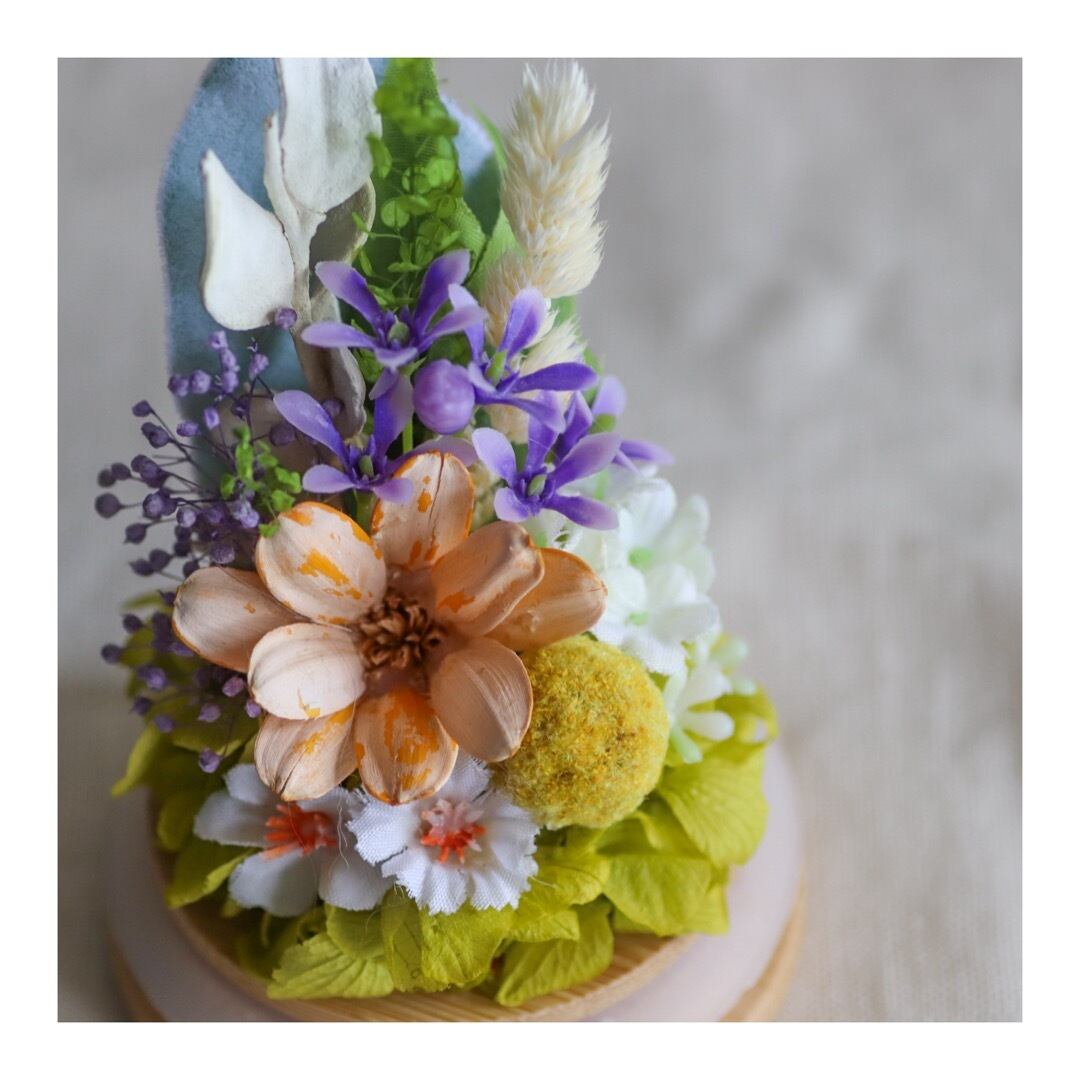 Lo65*仏花*お供え*アレンジメント*プリザーブドフラワー*ガラス*一点物