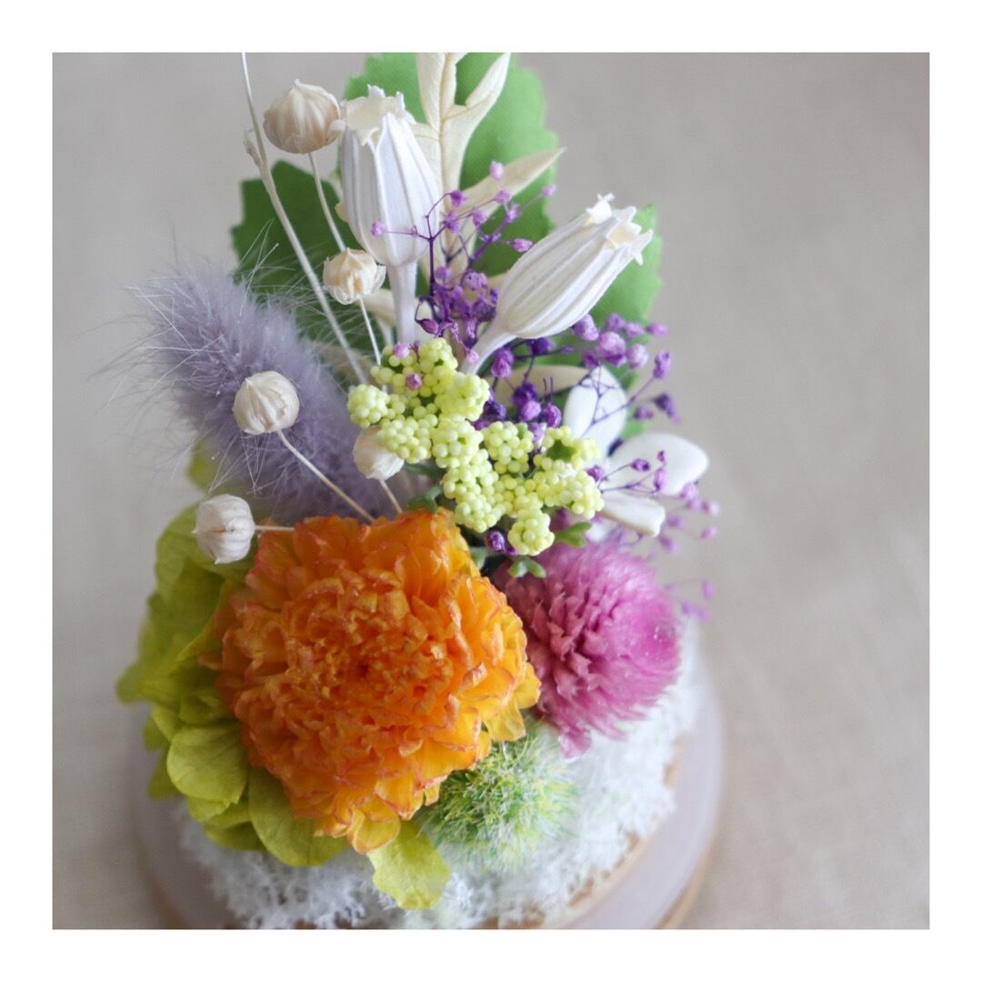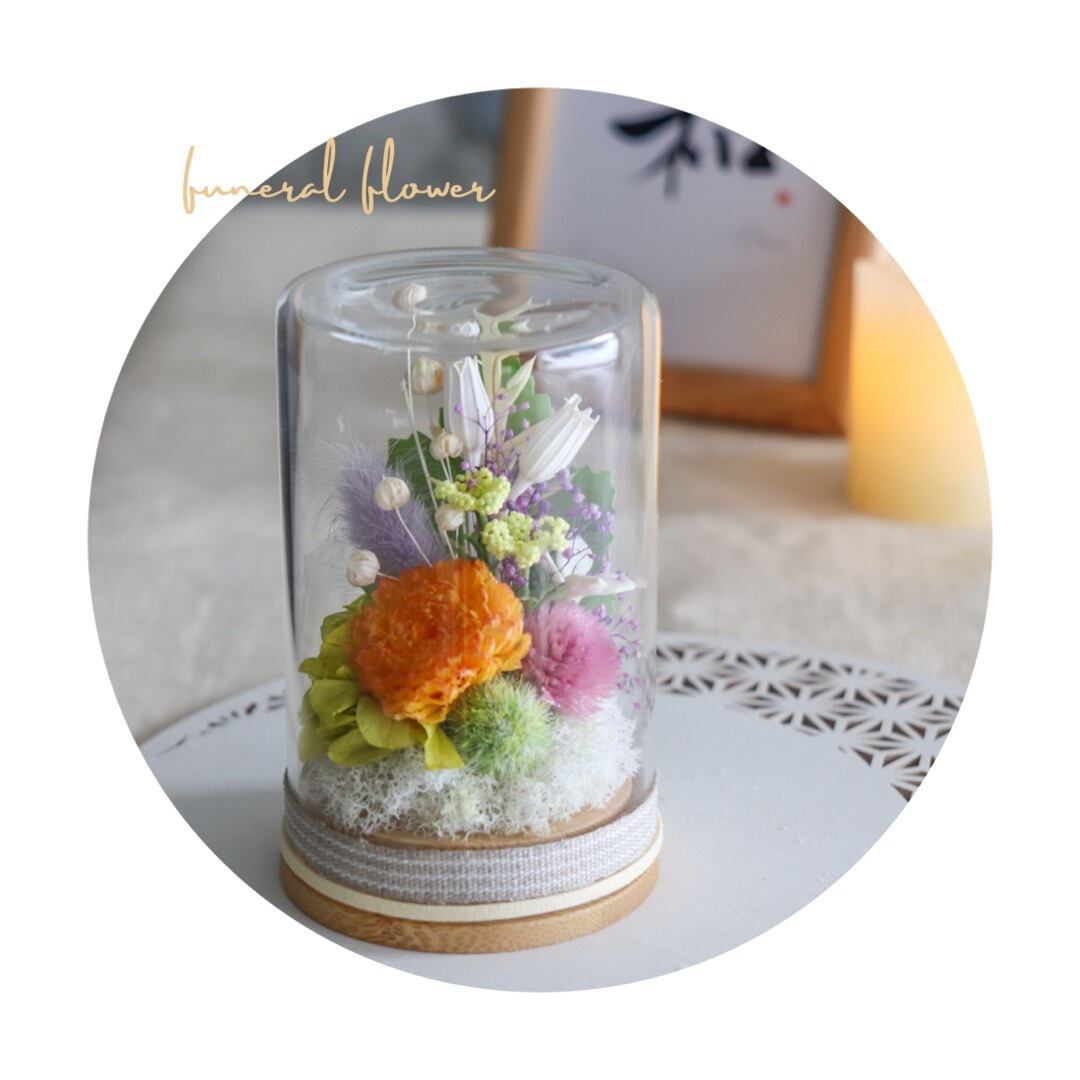 Lo74*仏花*お供え*アレンジメント*プリザーブドフラワー*ガラス*一点物