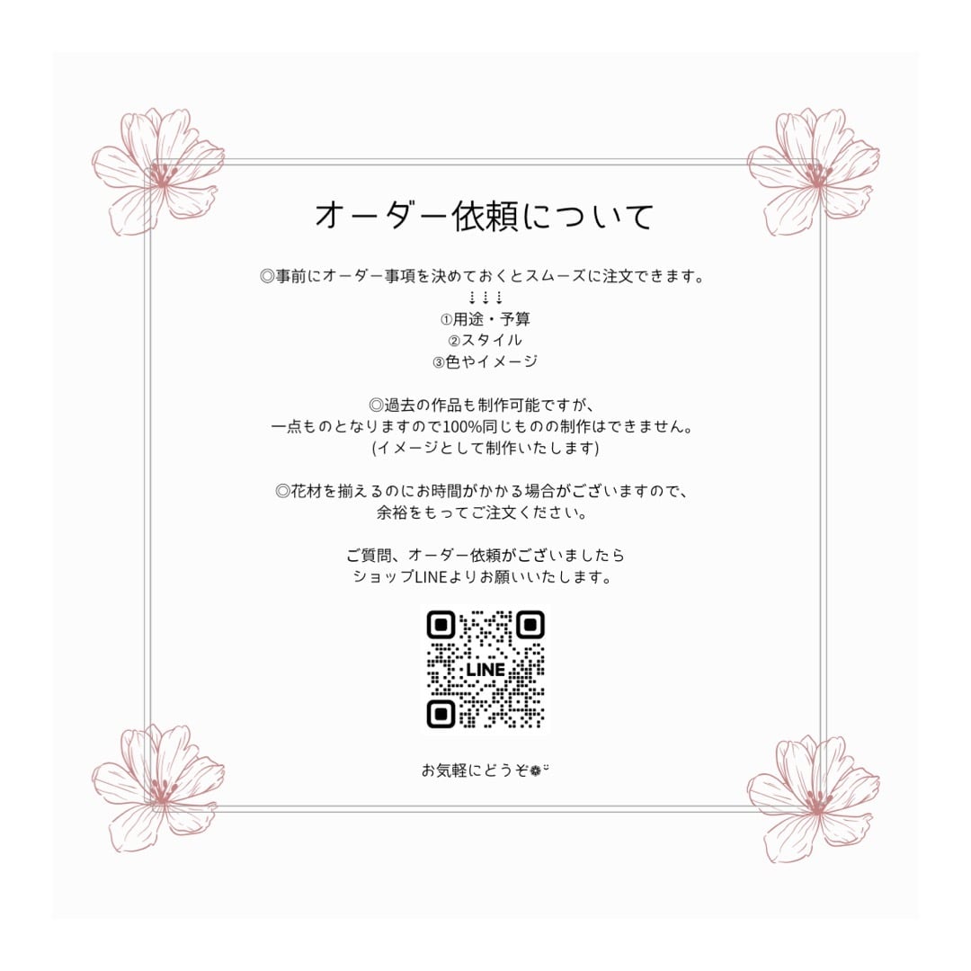 ●梱包には細心の注意をはらっておりますが、自然素材のため、花びらの切れや多少の葉こぼれ等がある場合がございます。